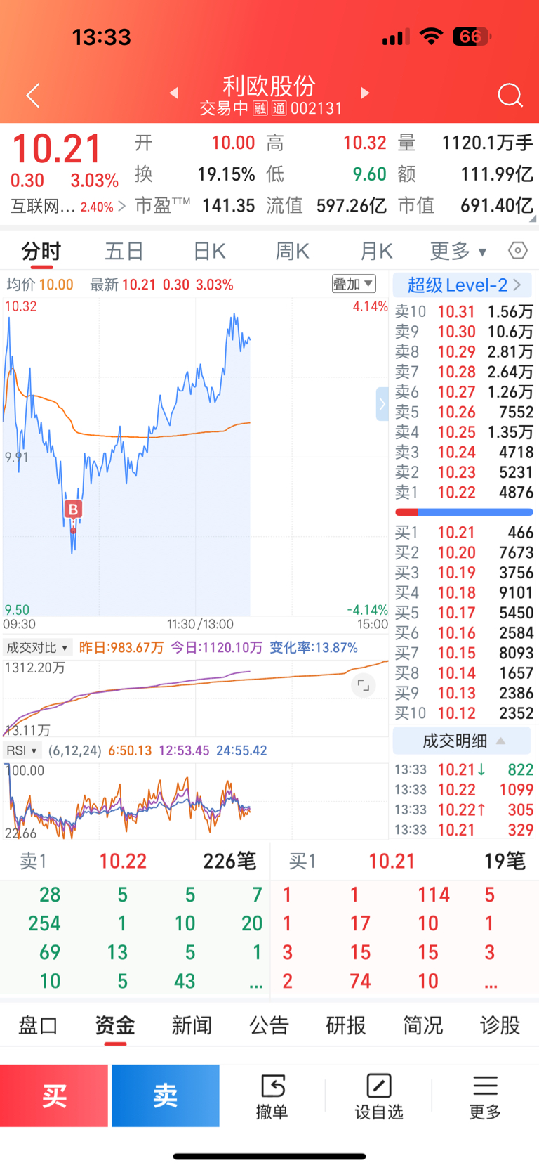 $利欧股份(SZ002131)$ 明天能吃肉么