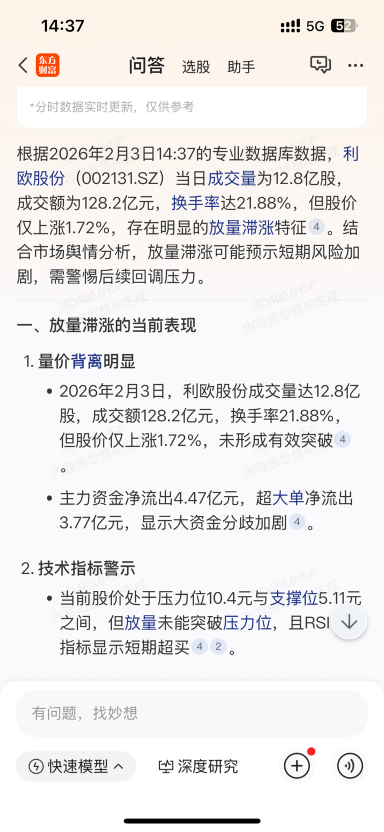 $利欧股份(SZ002131)$ 放量滞涨明天危险