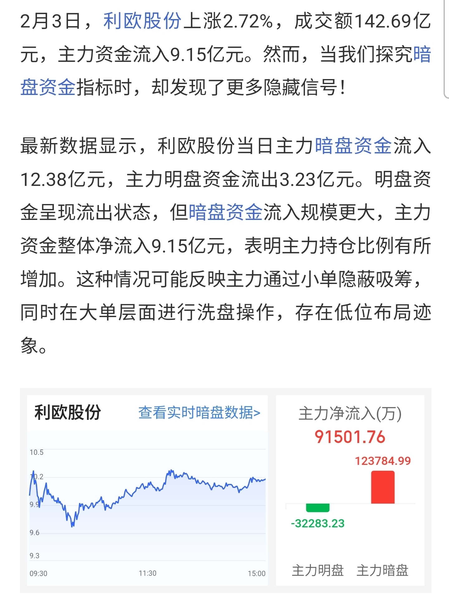 2.3利欧股份暗盘资金流入12.38亿
