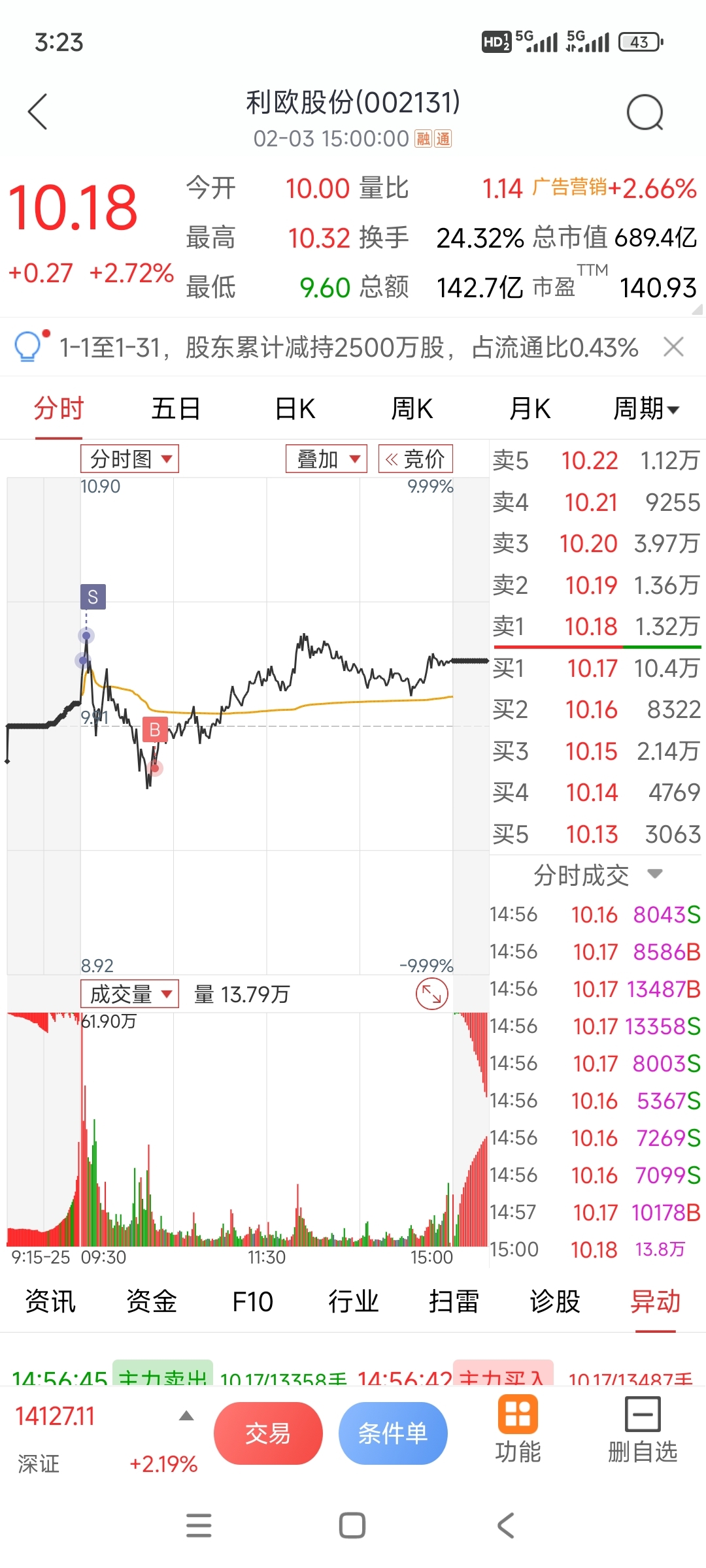 $利欧股份(SZ002131)$ 小散的每天做T之路