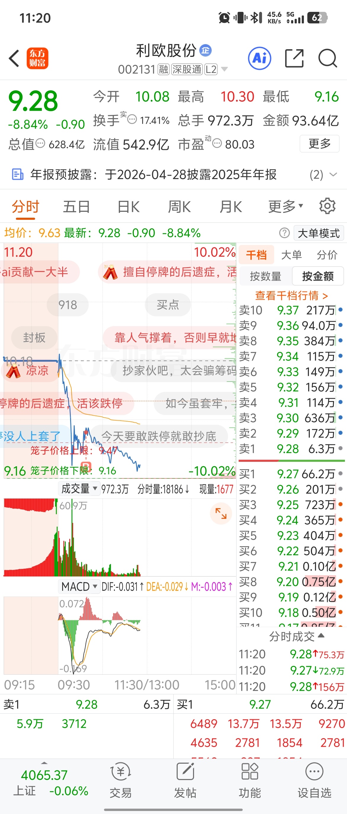 $利欧股份(SZ002131)$ 很自豪,本人能控制股市。一买就跌,一卖就涨。涨跌全在本人操作
