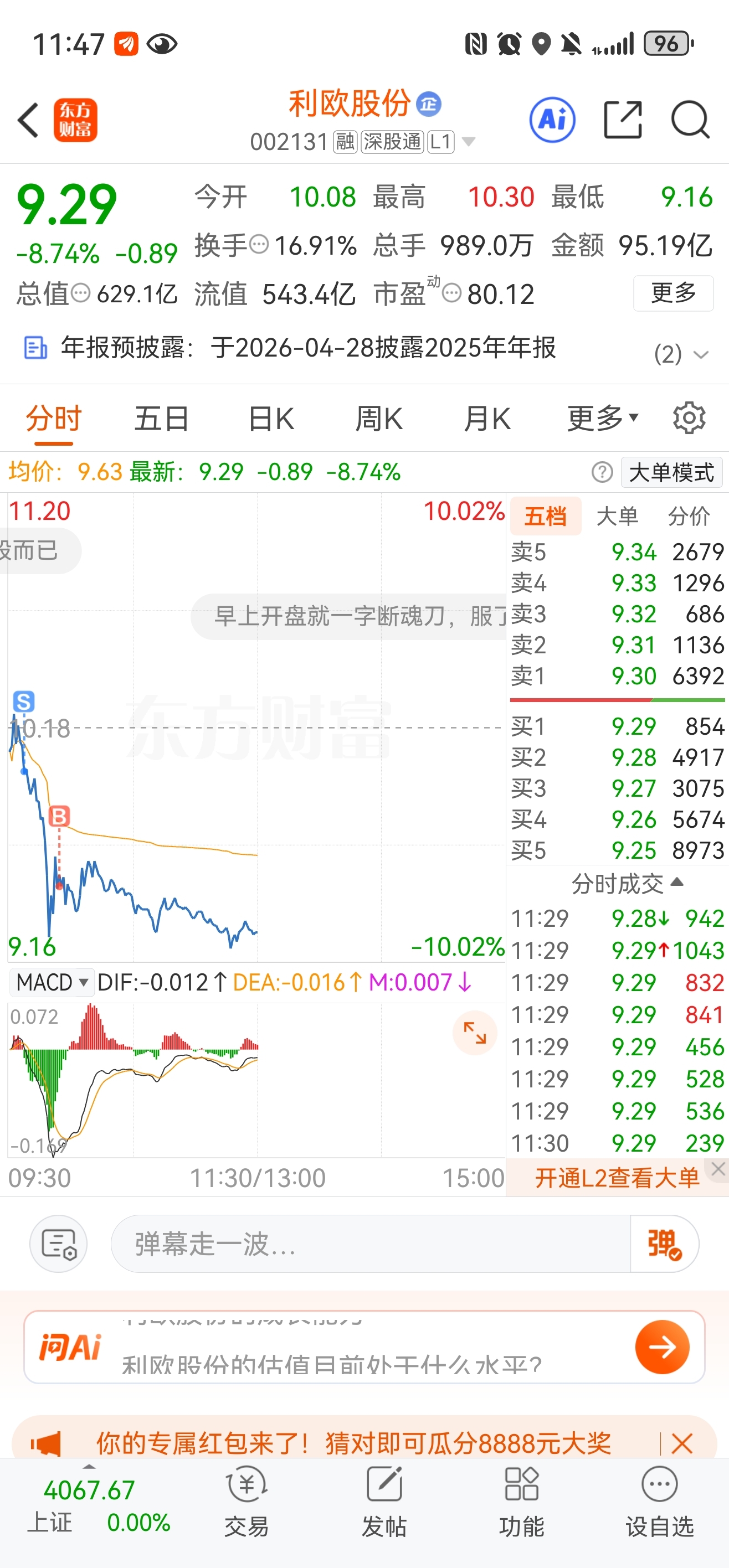 $利欧股份(SZ002131)$ 8块的本,有本事跌停