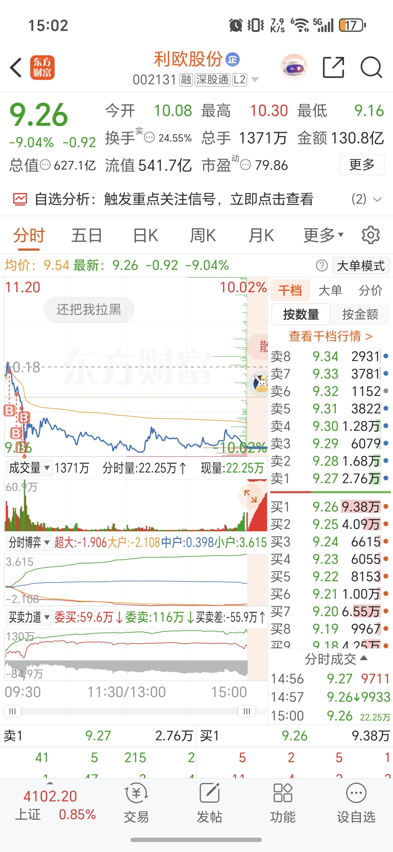 哎。尾盘又砸下来两个点,今天刚好亏两个点。坏消息破五日线了,好消息下面两毛钱就是