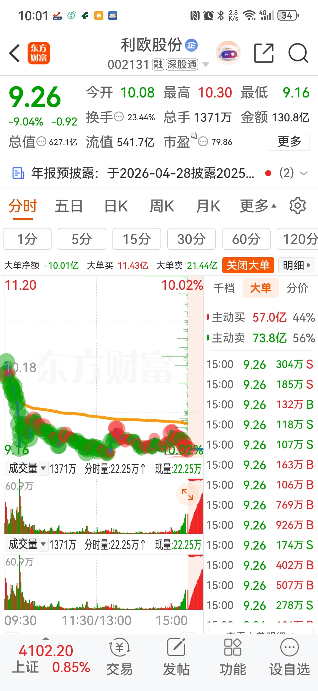 $利欧股份(SZ002131)$ 这是今天跑了16.8亿吗