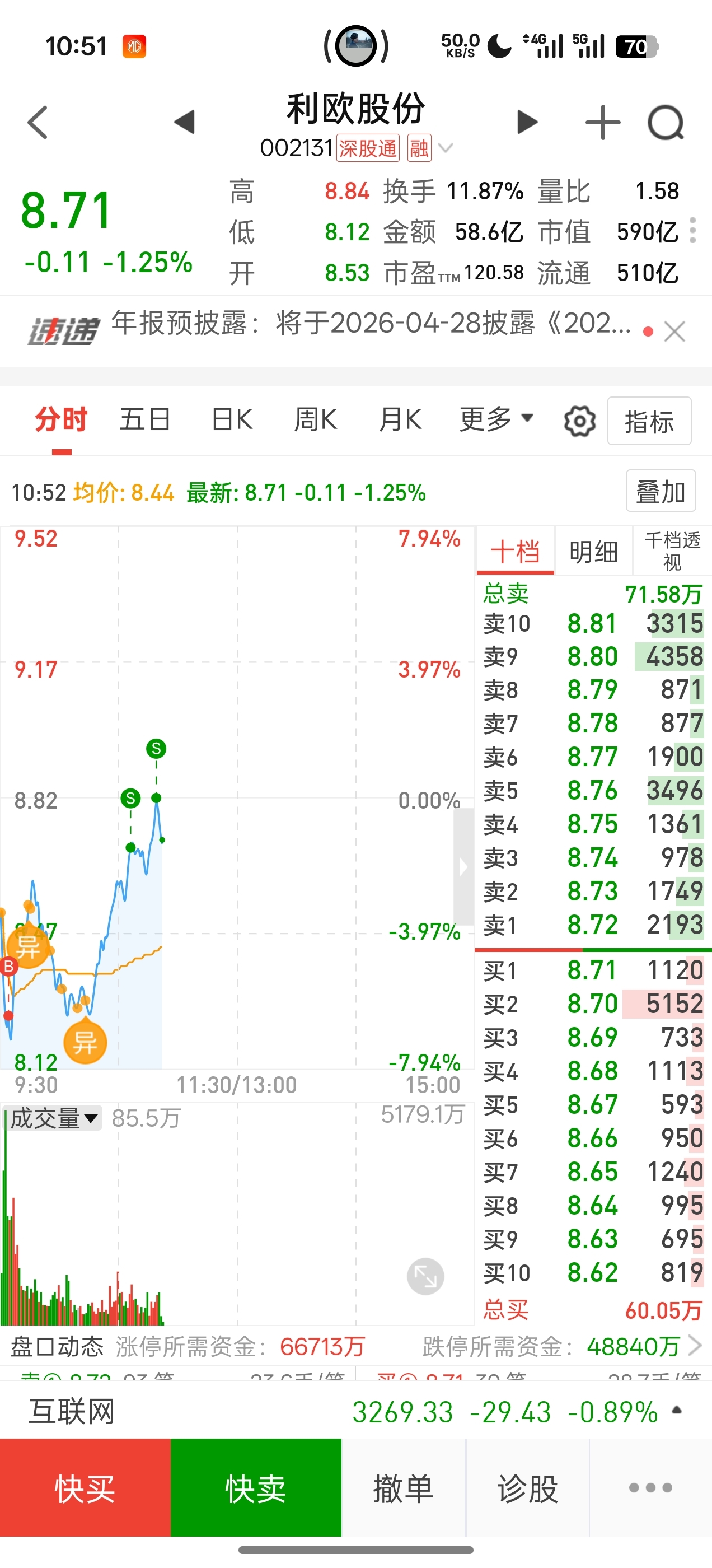 $利欧股份(SZ002131)$ 浅浅T一下,就是资金少