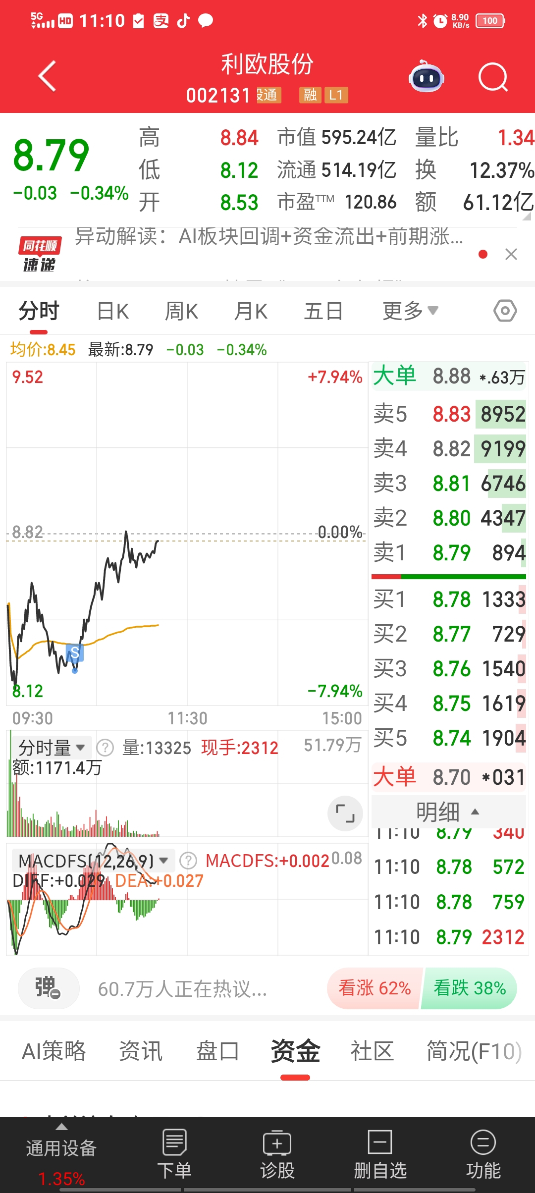 $利欧股份(SZ002131)$ 卖在最低点!格局了几天,最低点出了就拉