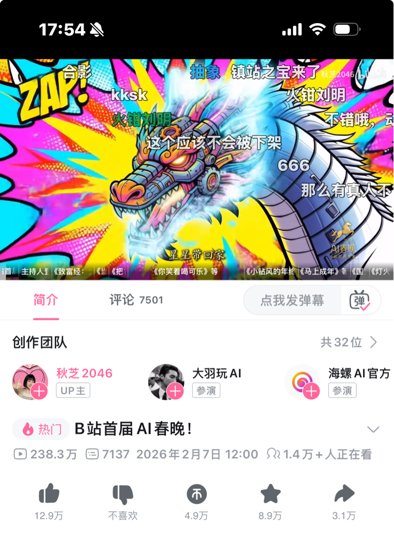 B站首届AI春晚宣传片已经出来了,AI今年最靓仔,要信早信