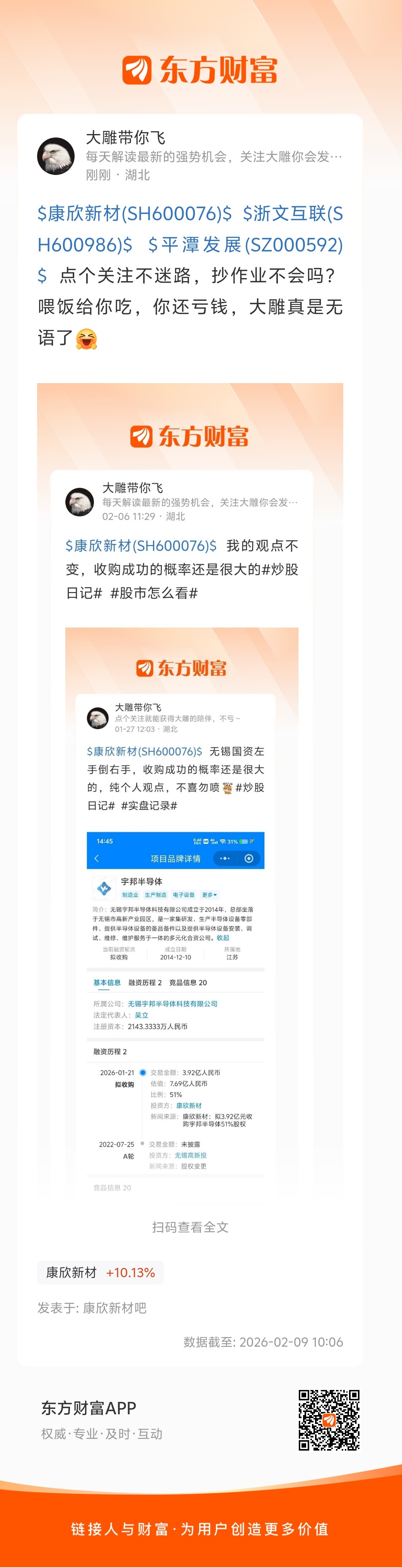 温馨提示: 1.根据《证券法》规定,禁止编造、传播虚假信息或者误导性信息,扰乱证券市场;2.用户在本社区发表的所有资料、言论等仅代表个人观点,与本网站立场无关,不对您构成任何投资建议。用户应基于自己的独立判断,自行决定证券投资并承担相应风险。《东方财富社区管理规定》