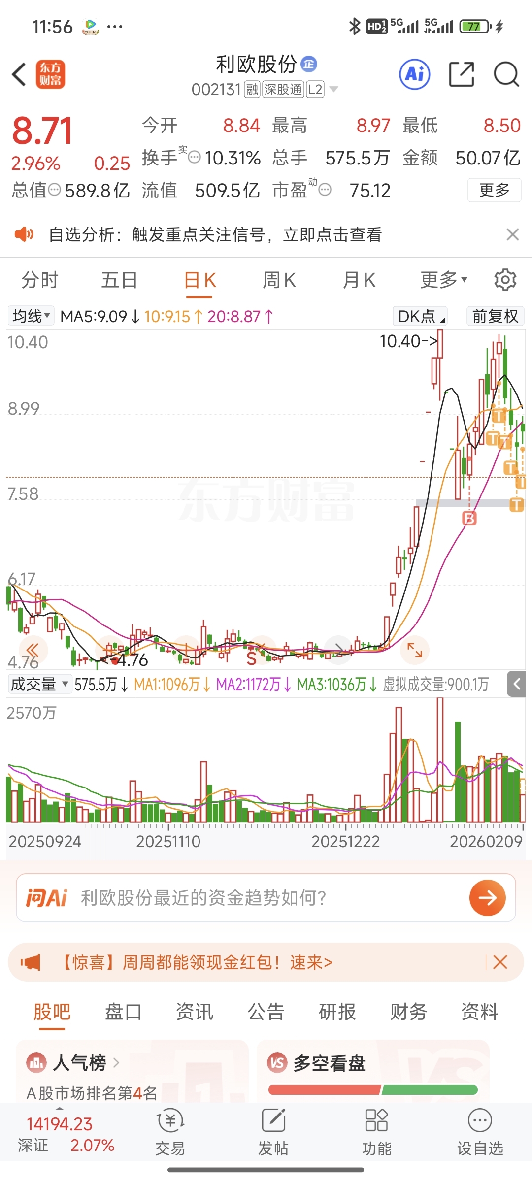$利欧股份(SZ002131)$ 每天不是在做t就是在做t的路上,哎