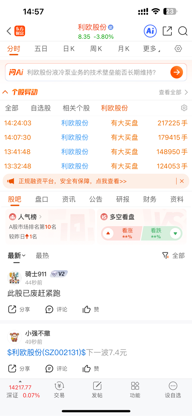 $利欧股份(SZ002131)$ 看看下午出去65万手,没有承接肯定跌停了,原机构基金主力5天出货80个亿打底,很明显这个股近期会一直被做空