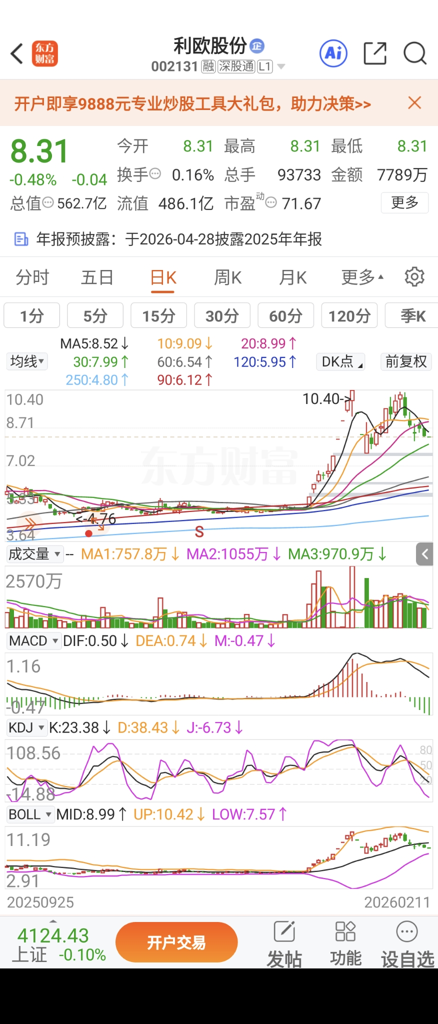 欧皇下跌中继,破八。