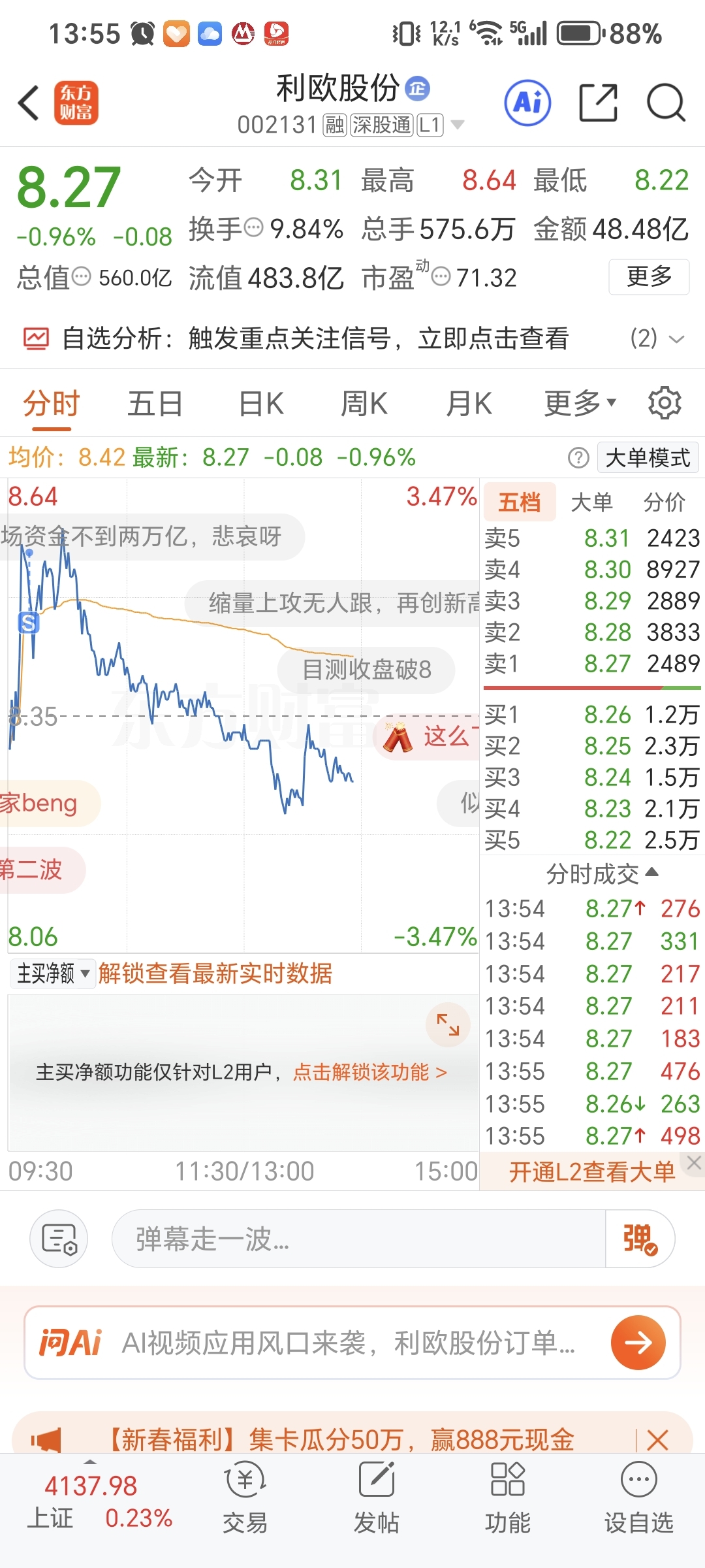 温馨提示: 1.根据《证券法》规定,禁止编造、传播虚假信息或者误导性信息,扰乱证券市场;2.用户在本社区发表的所有资料、言论等仅代表个人观点,与本网站立场无关,不对您构成任何投资建议。用户应基于自己的独立判断,自行决定证券投资并承担相应风险。《东方财富社区管理规定》