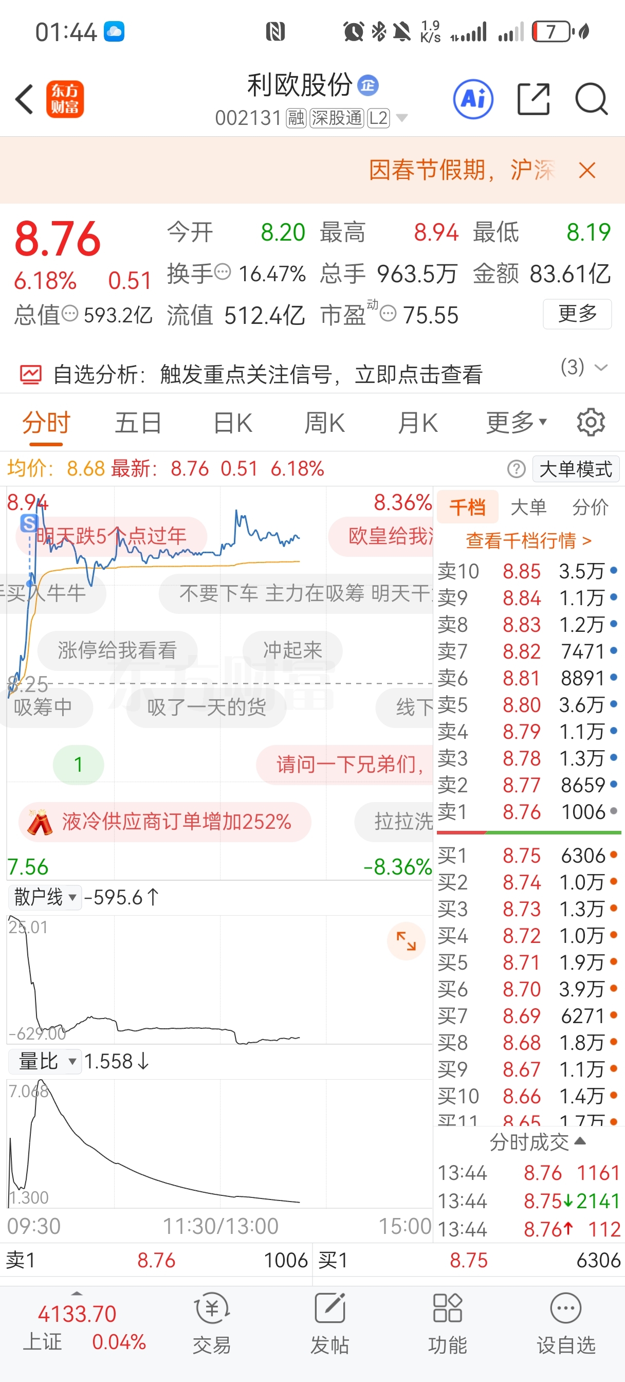 $利欧股份(SZ002131)$ 今天有多少人和我一样卖飞了