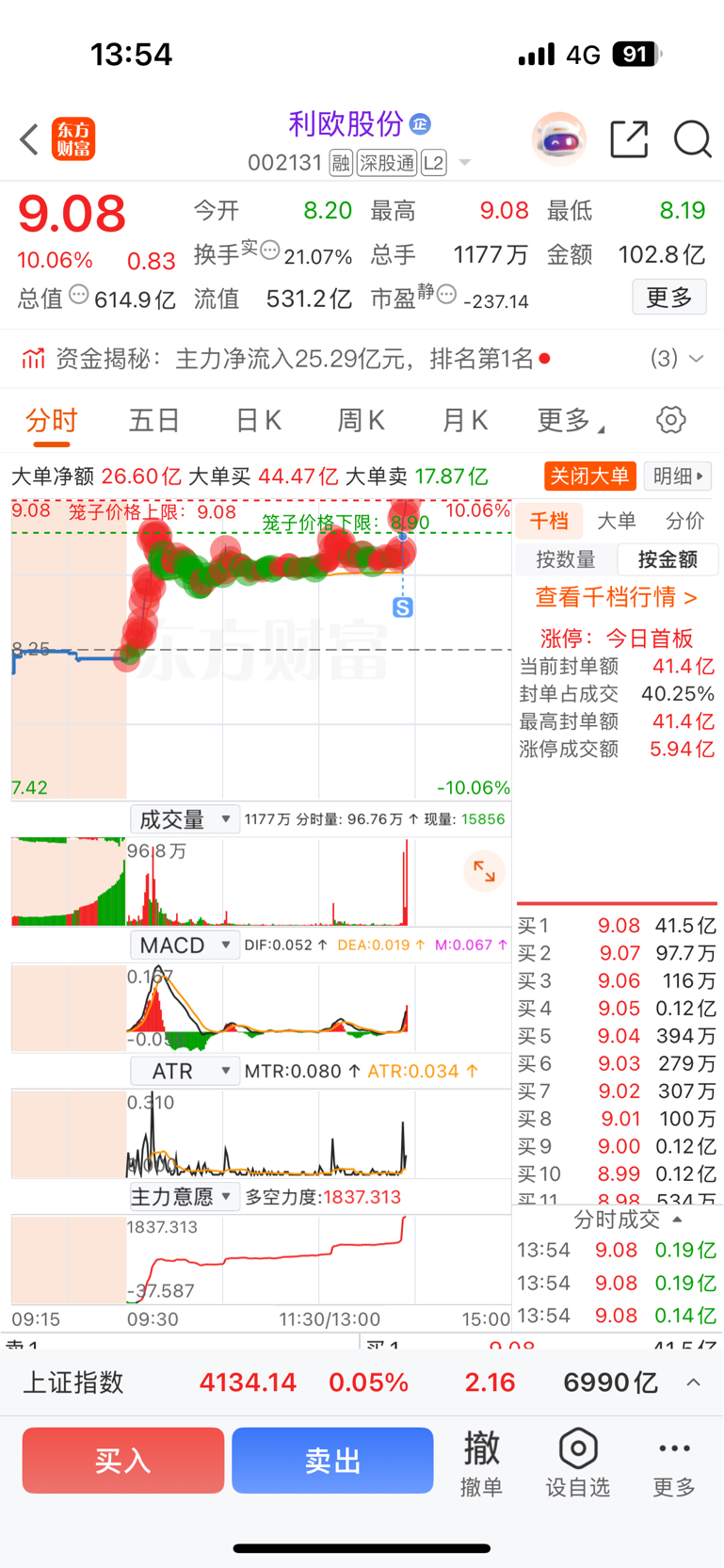 $利欧股份(SZ002131)$ 感谢主力感谢各位大哥节前的红包,昨天尾盘进的今天出了,谢谢你们祝车上的兄弟们继续赚大钱!
