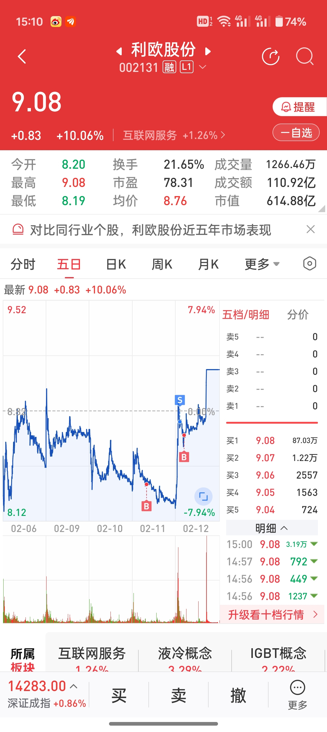 $利欧股份(SZ002131)$ 买了半仓,求求主力明天顶一个一字板,让我回回血,雷科半仓礼拜一挂在最高点,连跌四天亏死我了