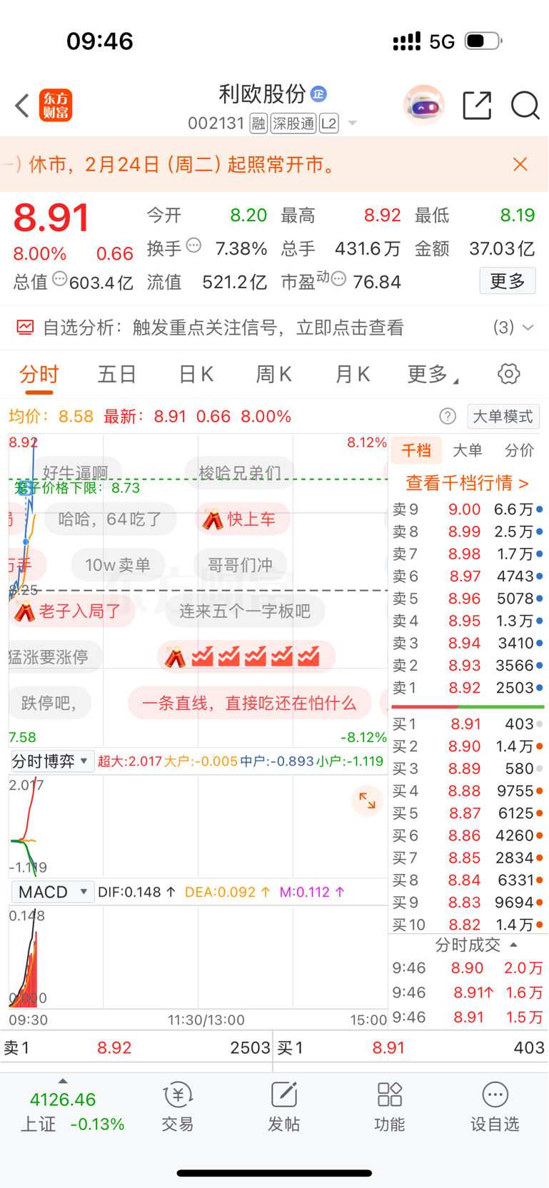 温馨提示: 1.根据《证券法》规定,禁止编造、传播虚假信息或者误导性信息,扰乱证券市场;2.用户在本社区发表的所有资料、言论等仅代表个人观点,与本网站立场无关,不对您构成任何投资建议。用户应基于自己的独立判断,自行决定证券投资并承担相应风险。《东方财富社区管理规定》