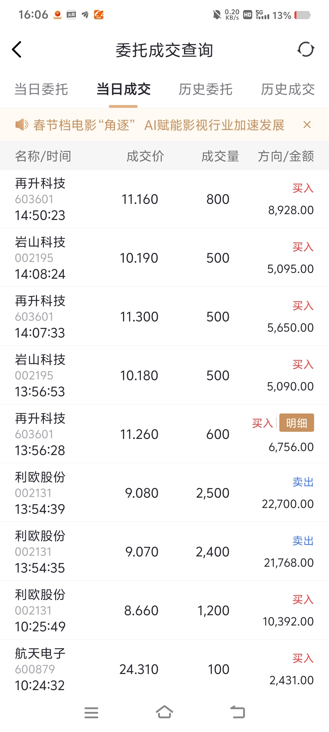 $利欧股份(SZ002131)$ 利欧我出了半仓了,本来不想出的,被再升吓得不敢不出,再升昨天开盘板,今天直接深水开,要过年了,祝大家新年发财!