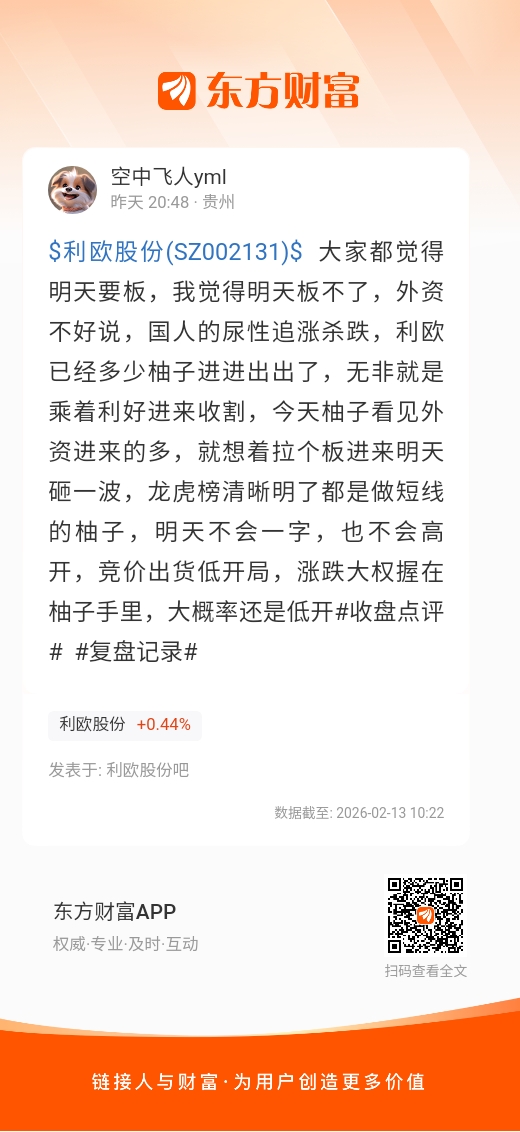温馨提示: 1.根据《证券法》规定,禁止编造、传播虚假信息或者误导性信息,扰乱证券市场;2.用户在本社区发表的所有资料、言论等仅代表个人观点,与本网站立场无关,不对您构成任何投资建议。用户应基于自己的独立判断,自行决定证券投资并承担相应风险。《东方财富社区管理规定》