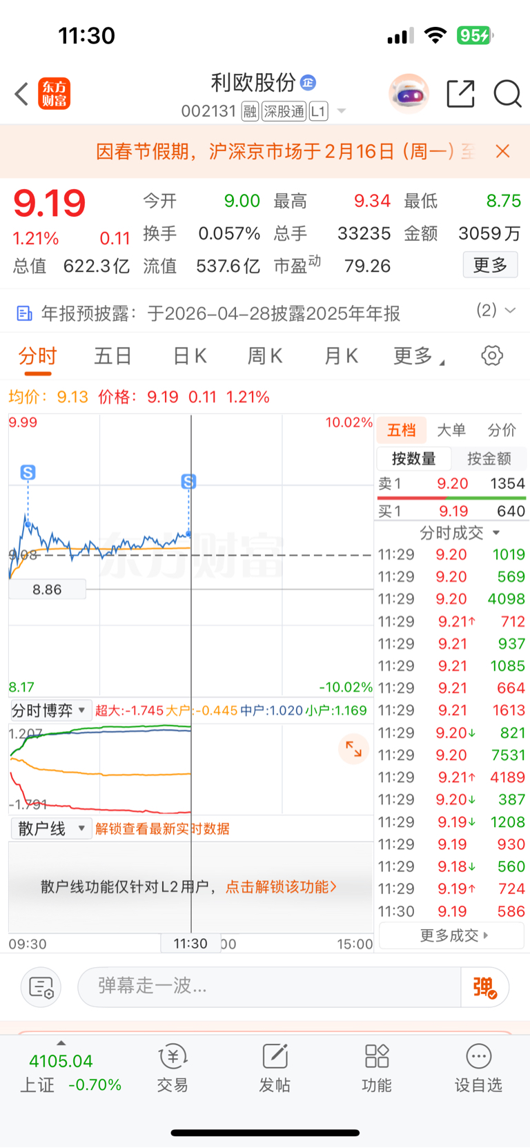 $利欧股份(SZ002131)$ 昨天加今天让我赚了1.2w,过年吃席的钱赚到了,感谢欧皇,车上的人发财,我先走了舒舒服服过年