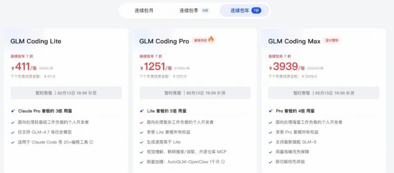 昨晚,智谱发布了据悉性能对标Claude Opus 4.5的GLM-5。智谱宣布对GLM Coding Plan套餐涨价:取消首购优惠,保留按季按年订阅优惠;套餐价格进行结构性调整,整体涨幅自30%起;已订阅用户价格保持不变。
