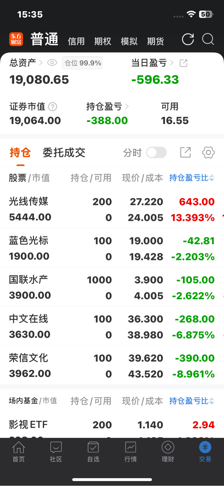 赚的都亏完了买的涨18个点的还买少了脑瓜子嗡嗡的596个没了今年还赚3800个初