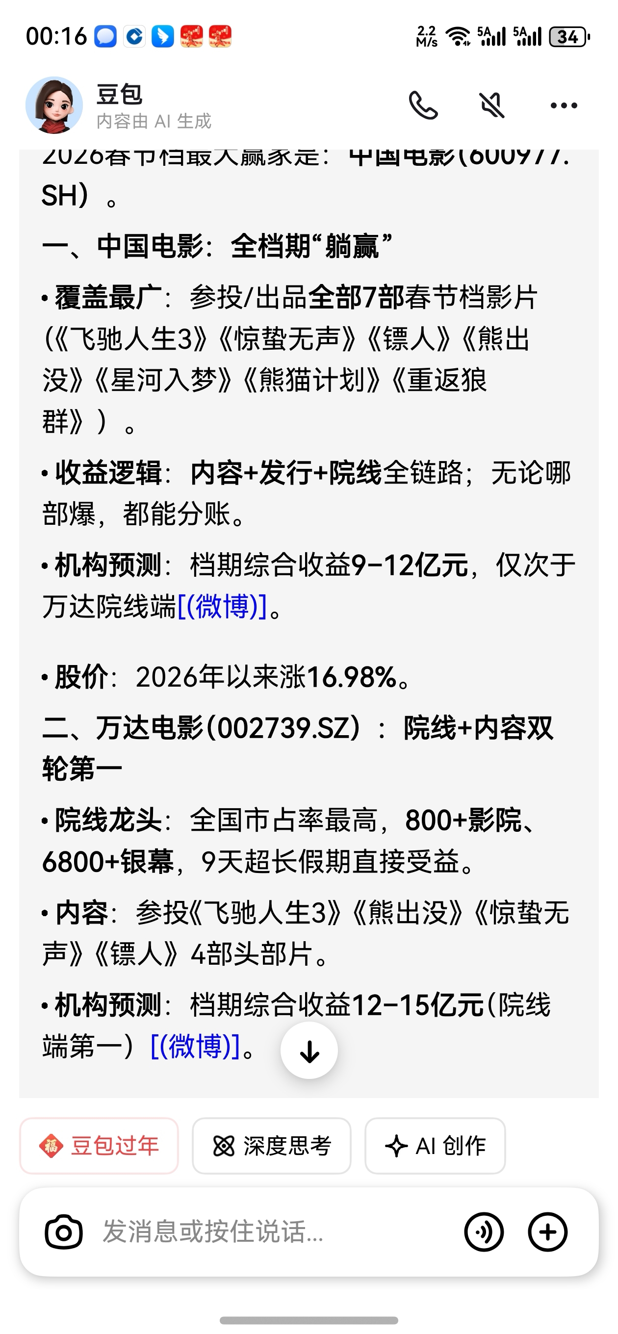 $利欧股份(SZ002131)$ 院线龙头万达电影