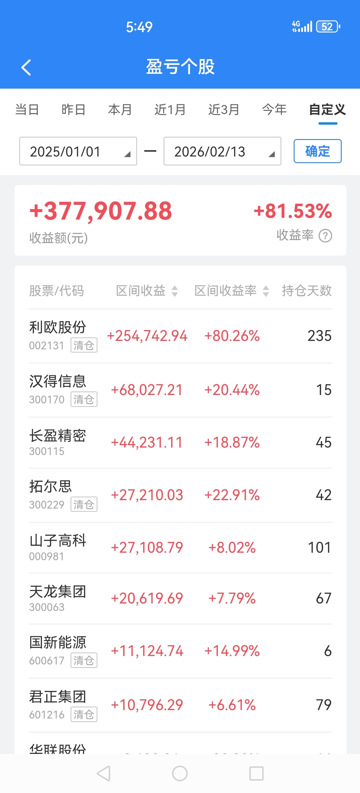 $利欧股份(SZ002131)$ 2025年结束了,回顾2025年,展望2026年。利欧贯穿整年,持股262天,收益30个排第一,看中利欧低价双轮驱动,多热点液冷+Ai应用+多元投资+赴港+业绩向好,目前继续持有365手。第二名山子高科持股1佰多天,从9月开始介入,收益16个,波动大,最高盈利30个,目前继续持有500手,第三名汉得信息,仅持有20多天,前十天收益10个,后继续参与回吐,收益6个多。目前二个帐户收于96.5W,2026年主要方向收益后控制回撤,正在摸索有效之法,小蜜蜂止盈法,控仓做T,戒贪,戒恐。2月份一直控仓,最后一个交日持仓打满,目前还持有天龙集团与长盈精密。