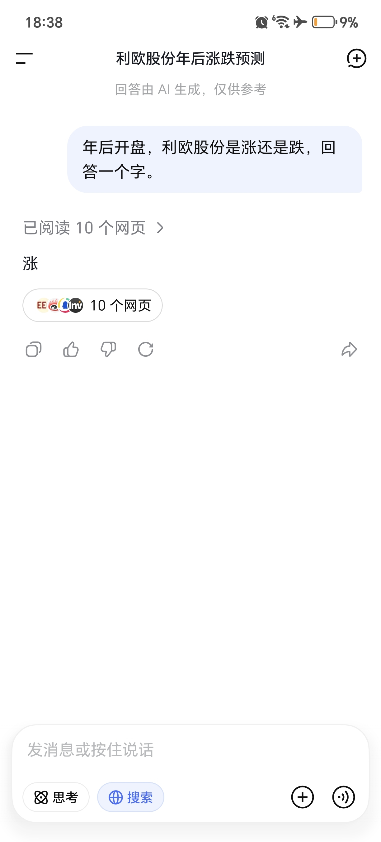 春节后第一个交易日,利欧股份是涨还是跌。千问和deepseek有答案