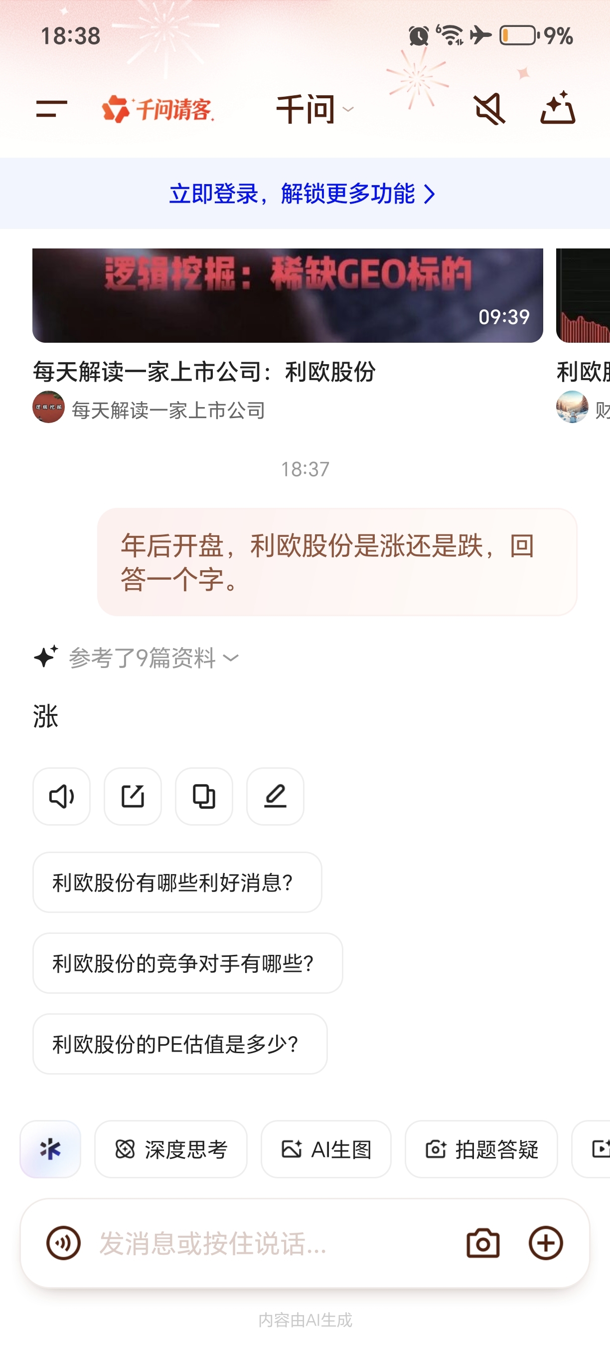春节后第一个交易日,利欧股份是涨还是跌。千问和deepseek有答案