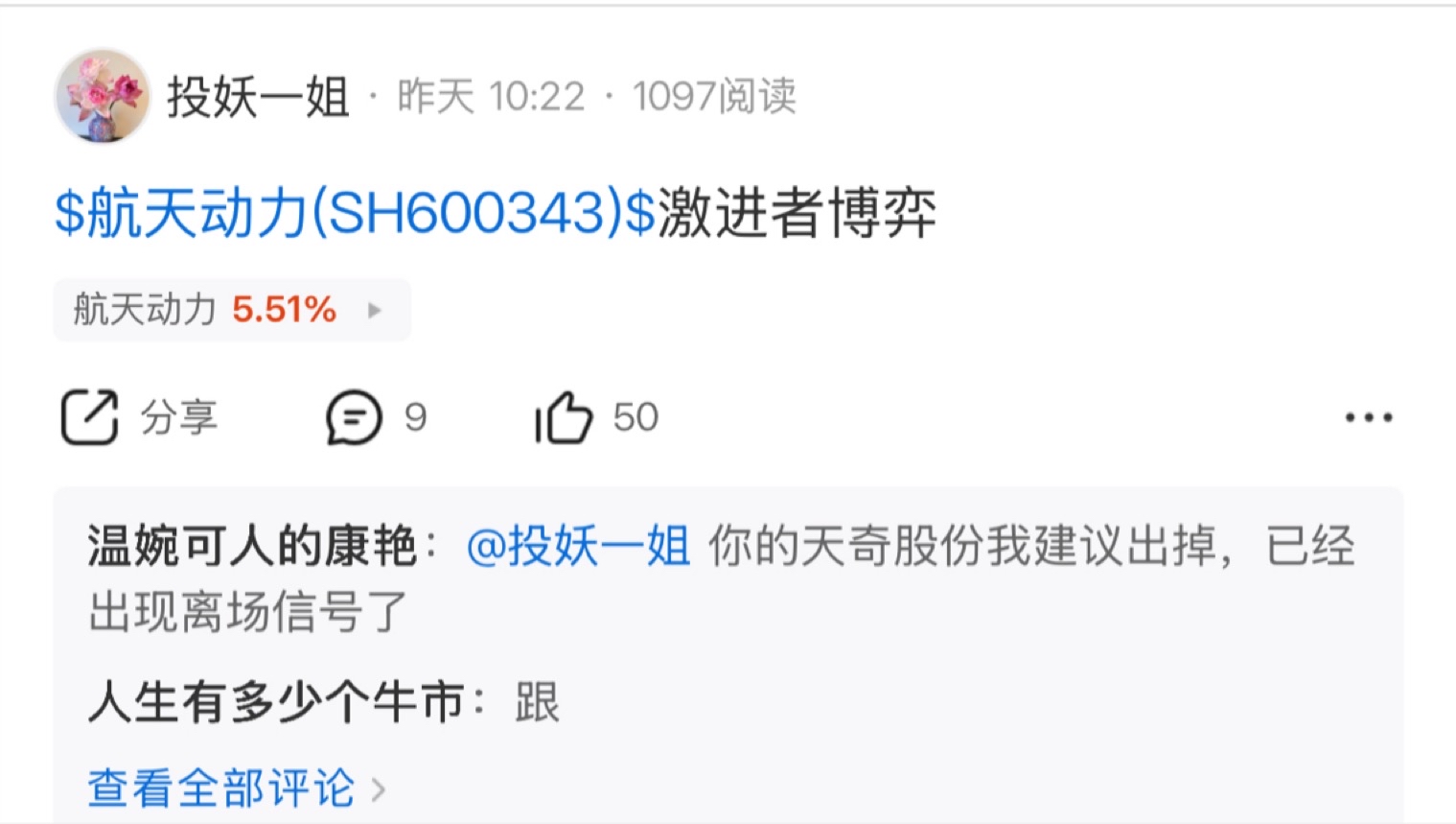 $利欧股份(SZ002131)$ $航天动力(SH600343)$