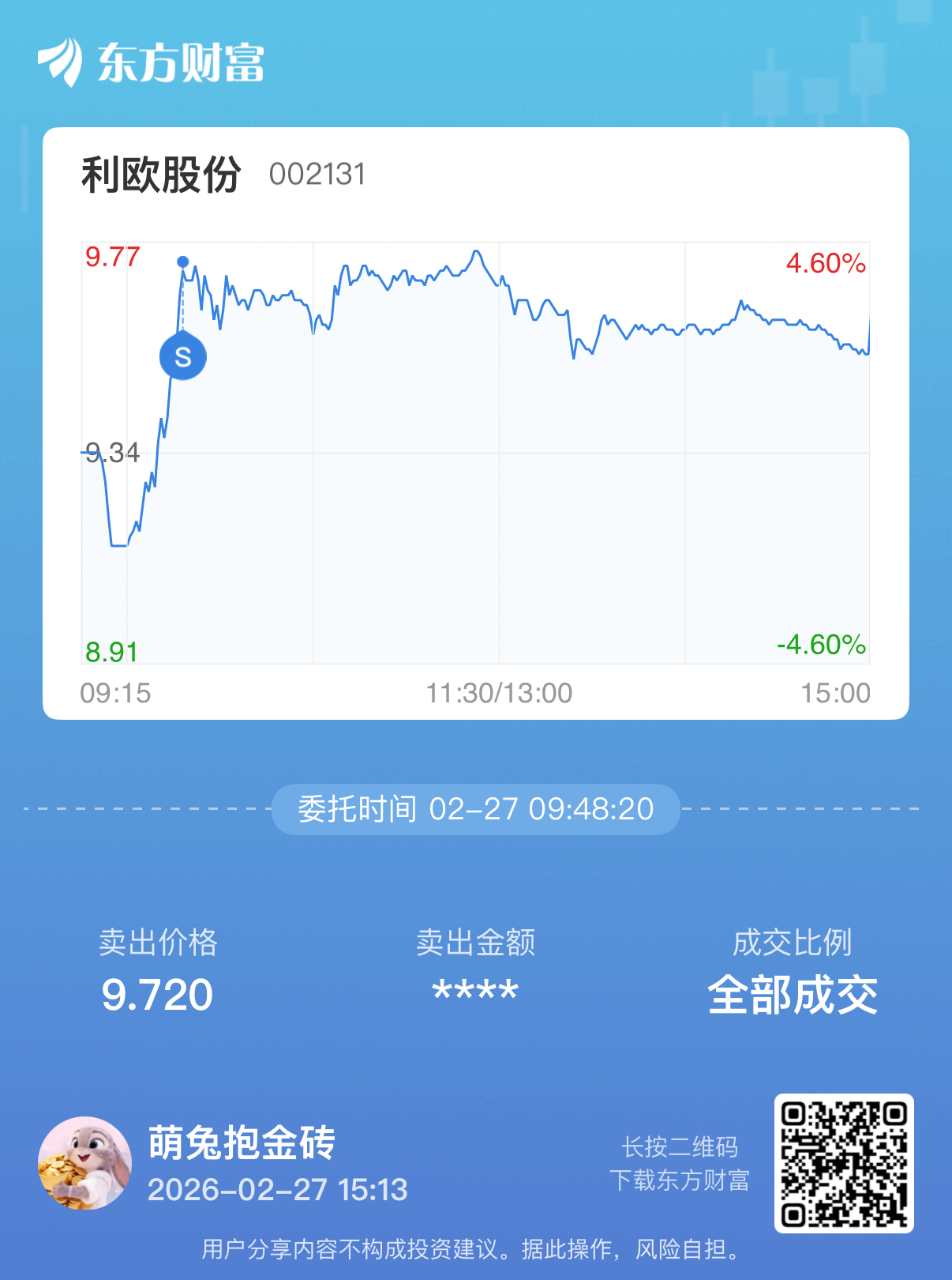 温馨提示: 1.根据《证券法》规定,禁止编造、传播虚假信息或者误导性信息,扰乱证券市场;2.用户在本社区发表的所有资料、言论等仅代表个人观点,与本网站立场无关,不对您构成任何投资建议。用户应基于自己的独立判断,自行决定证券投资并承担相应风险。《东方财富社区管理规定》