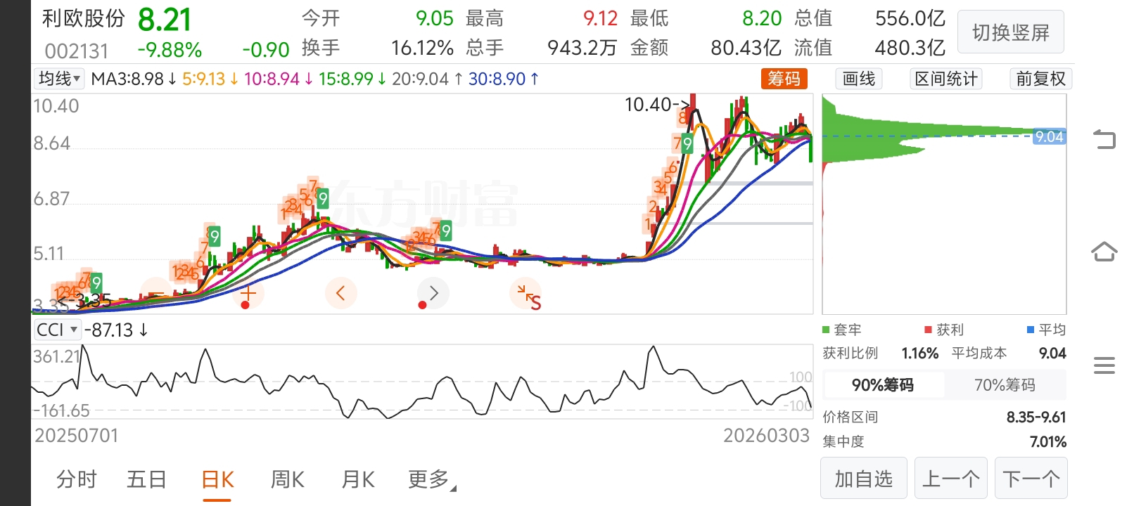 $利欧股份(SZ002131)$ 低位筹码已经走光了,赚完了一波,你还等什么????