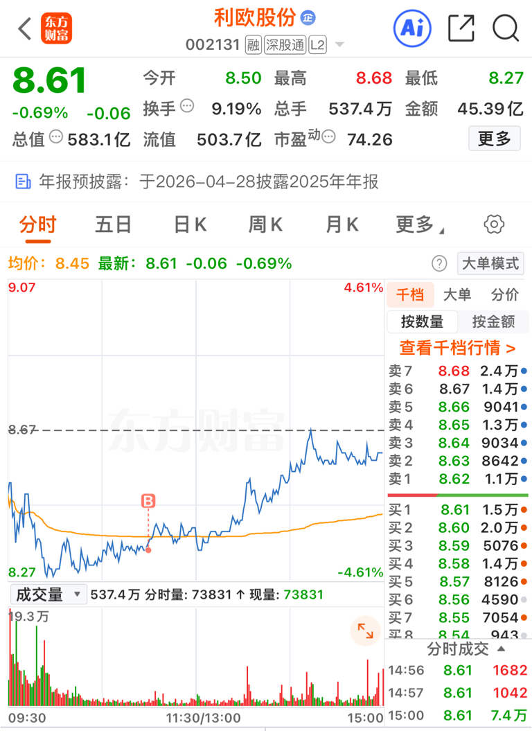 $利欧股份(SZ002131)$ 看到有大哥买了就跟一笔
