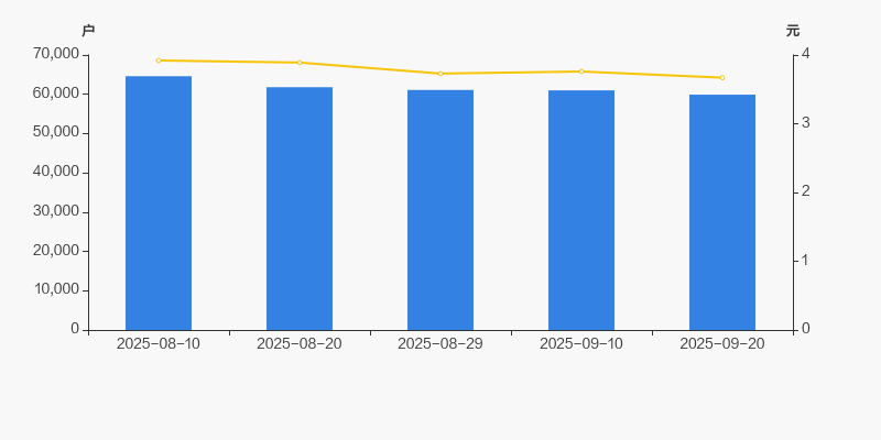 2025年8月10日至今,公司股东户数有所下降,区间跌幅为7.28%。2025年8月10日至2025年9月20日区间股价下降6.38%。