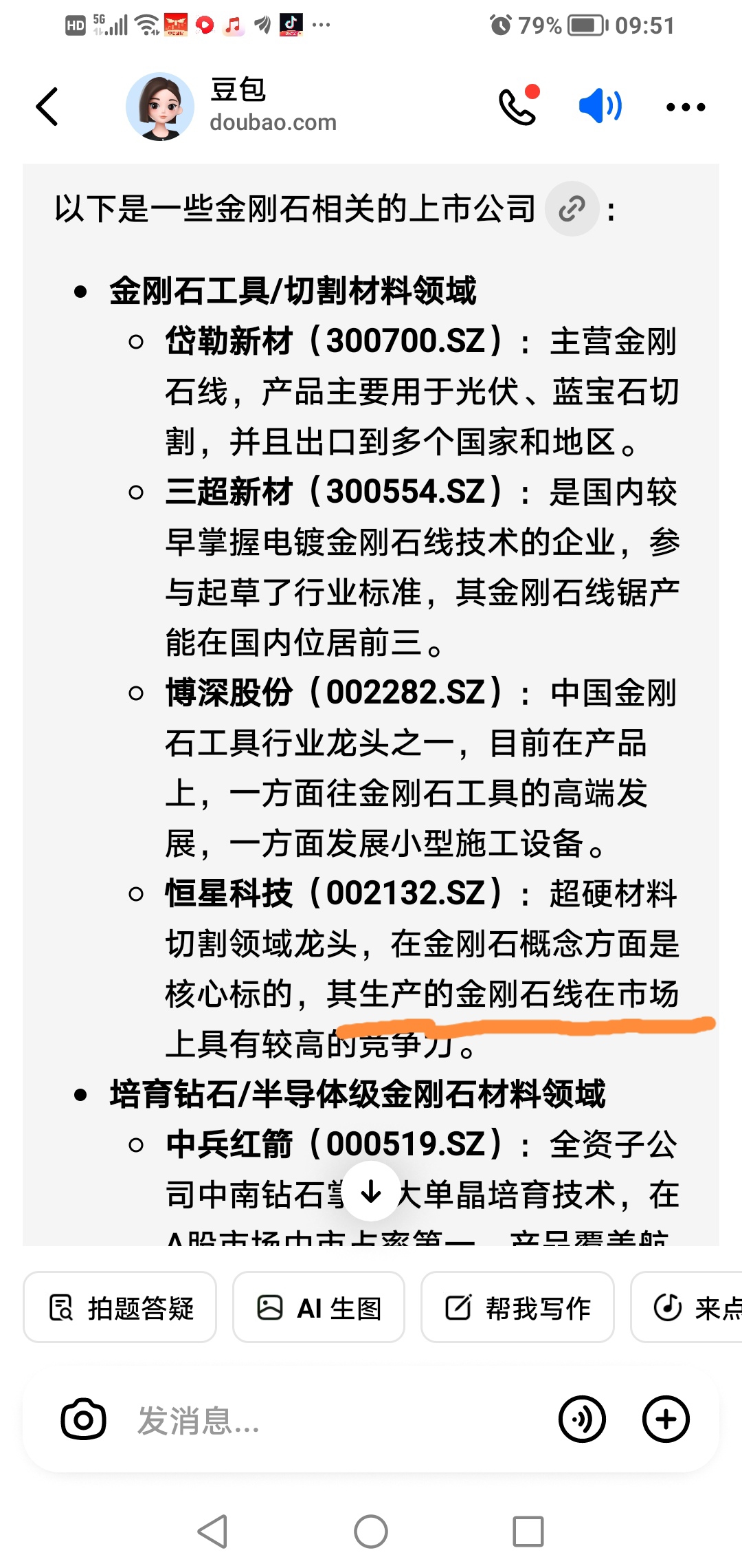 从豆包查询,有金刚石线,是不是也有金刚概念。