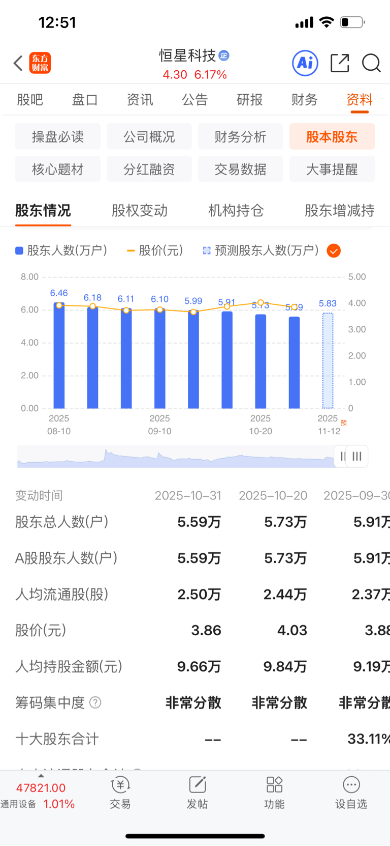 $恒星科技(SZ002132)$ 股东人数越来越少