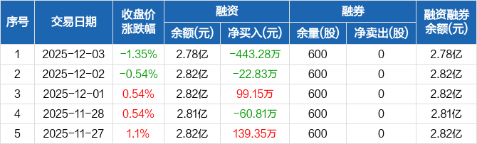恒星科技:融资净偿还443.28万元,融资余额2.78亿元(12-03)