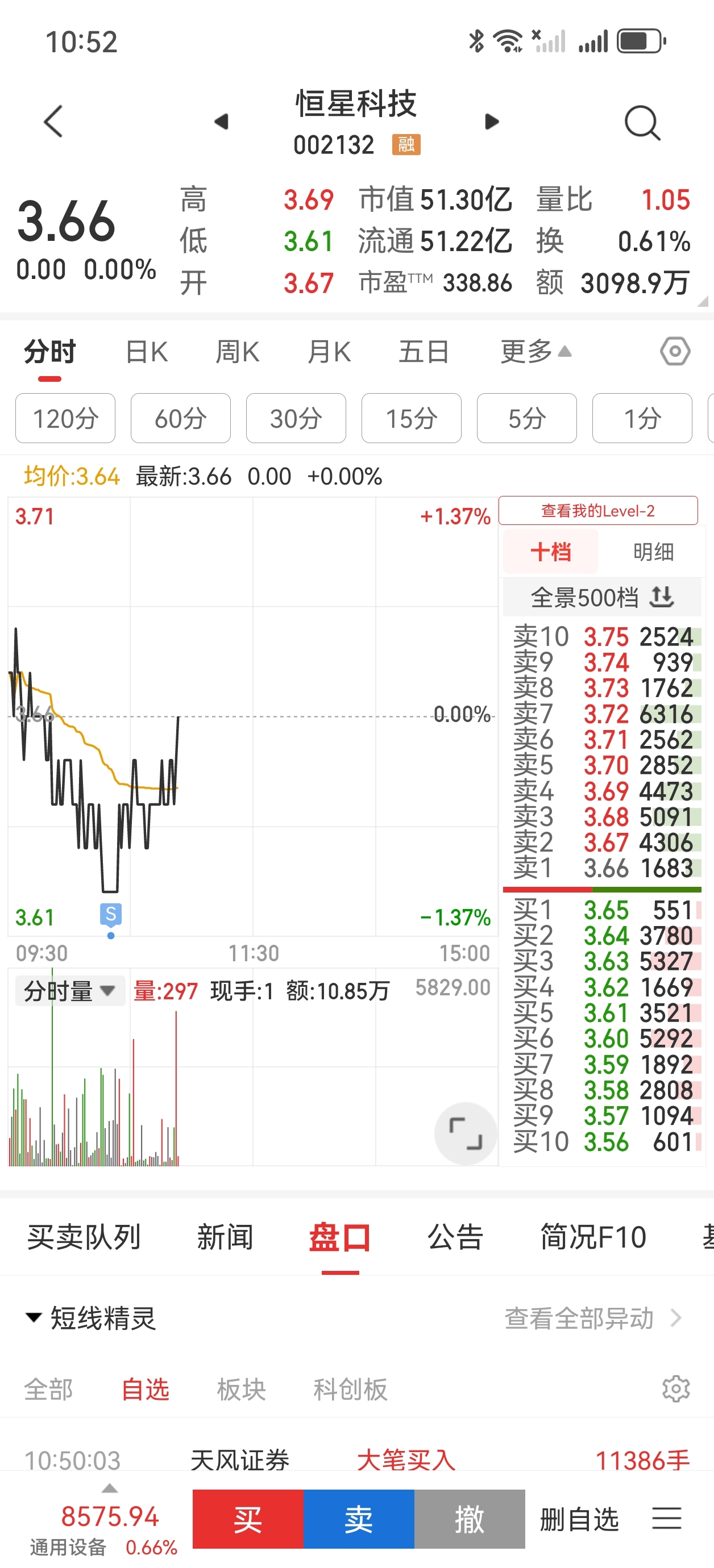 $恒星科技(SZ002132)$ 割肉了,你使劲拉吧