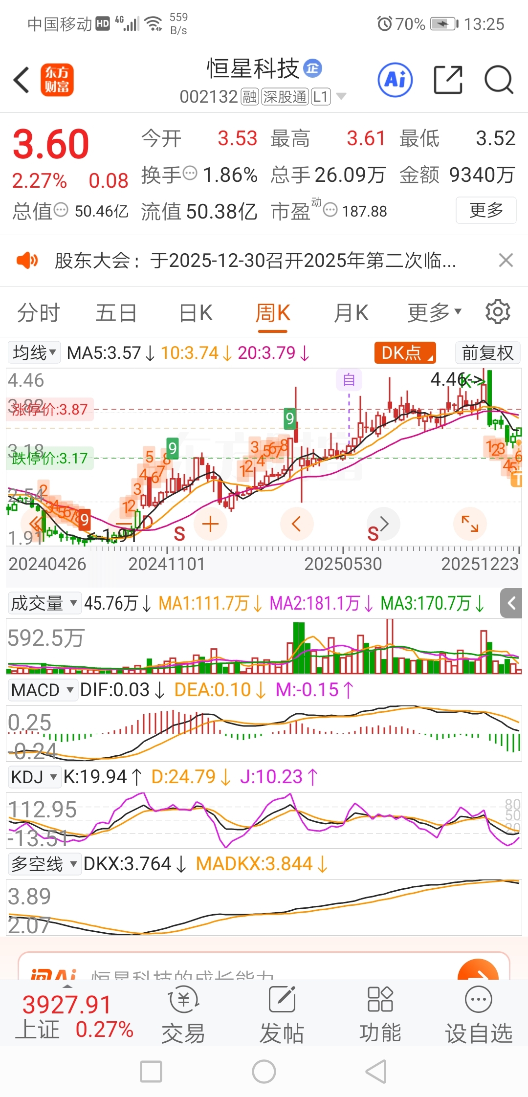 $恒星科技(SZ002132)$ 保持半仓滚动操作,有机会就剃一下