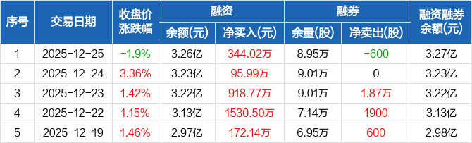 恒星科技:融资余额3.26亿元,创近一年新高(12-25)