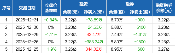 恒星科技:融资净偿还78.89万元,融资余额3.22亿元(12-31)