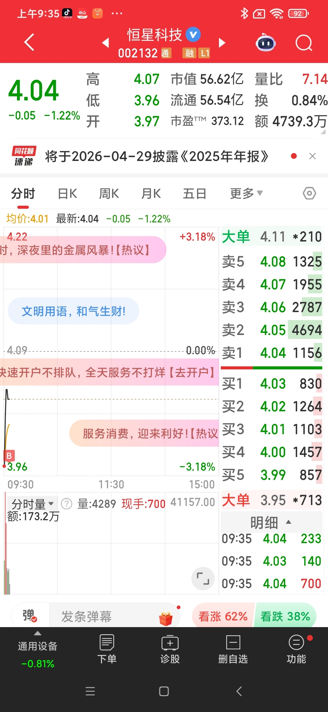 $恒星科技(SZ002132)$ 我真的好怕怕啊,昨天加的被埋了,今天又满仓了,但我知道不压钱赢不了,这个我觉得值得赌一把,生死有命,富贵在天。先躺平了!!!有机会在做个t吧!