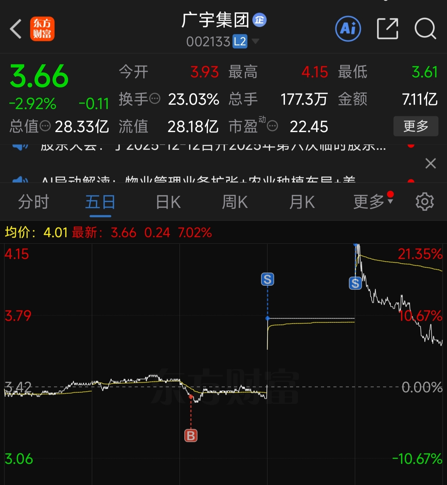 $广宇集团(SZ002133)$ 分散布局,买阴卖阳,不追涨不杀跌,积小胜为大胜。