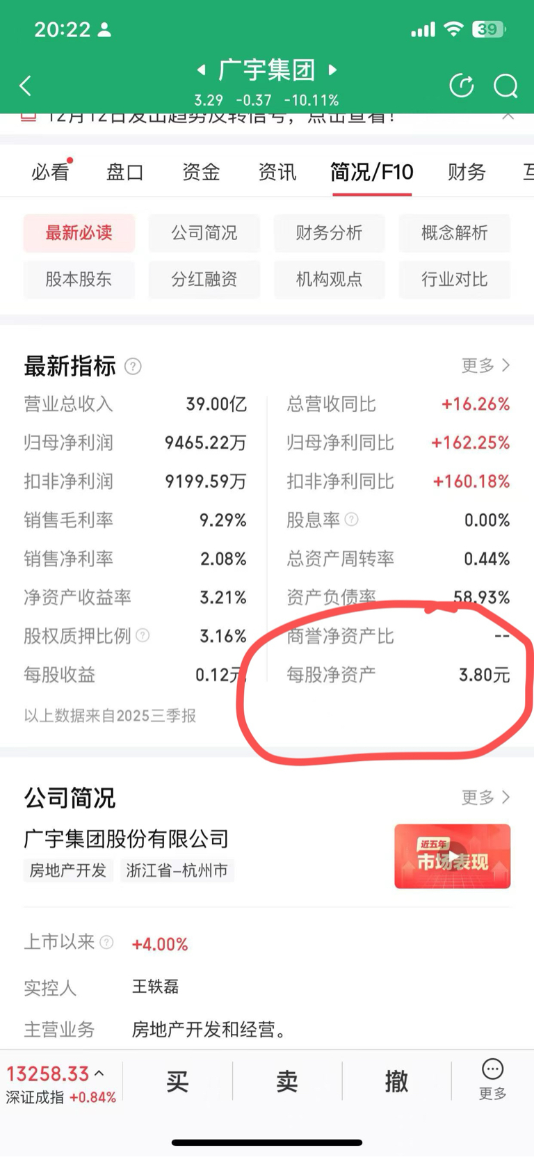 $广宇集团(SZ002133)$ 抄底抄早了,我错了、亏了两个多点,看下基本面,且位置也不高、拿个十天应该问题不大。解套应该很快。也算属于破净股,又是小盘股,做多也是很容易的,靠主力了,谁的钱都是钱,套牢盘接近百分之百。