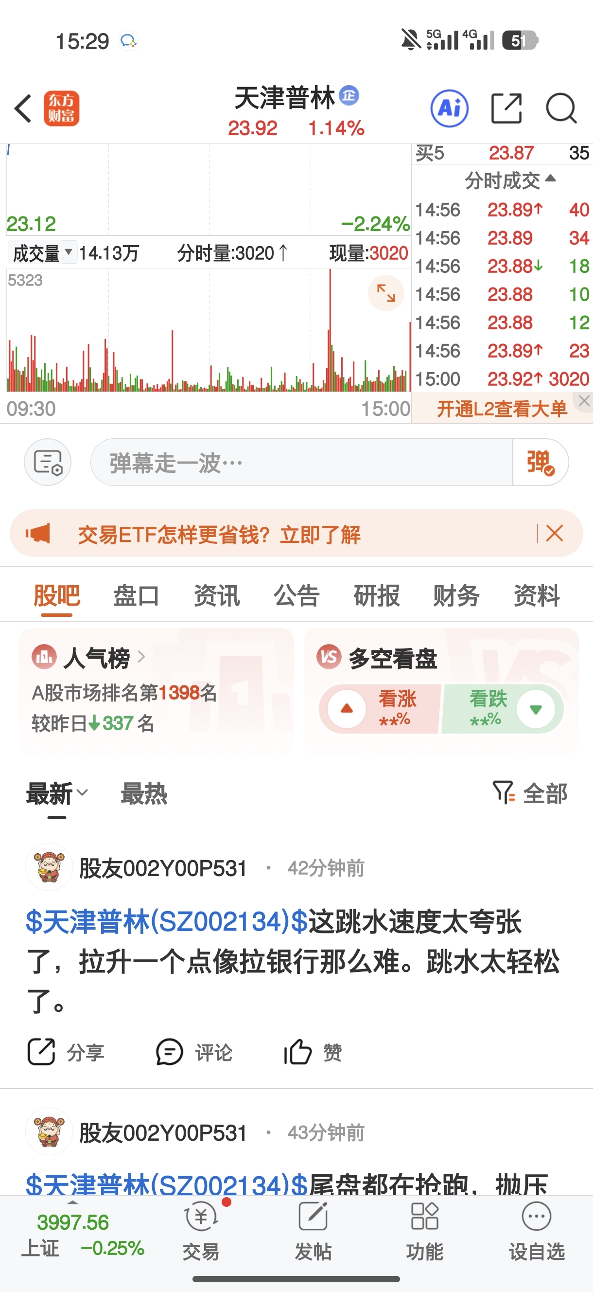 $天津普林(SZ002134)$ 周五截图的,自从昨天抖音推荐这只票后人气直接从1400名飙升到700名