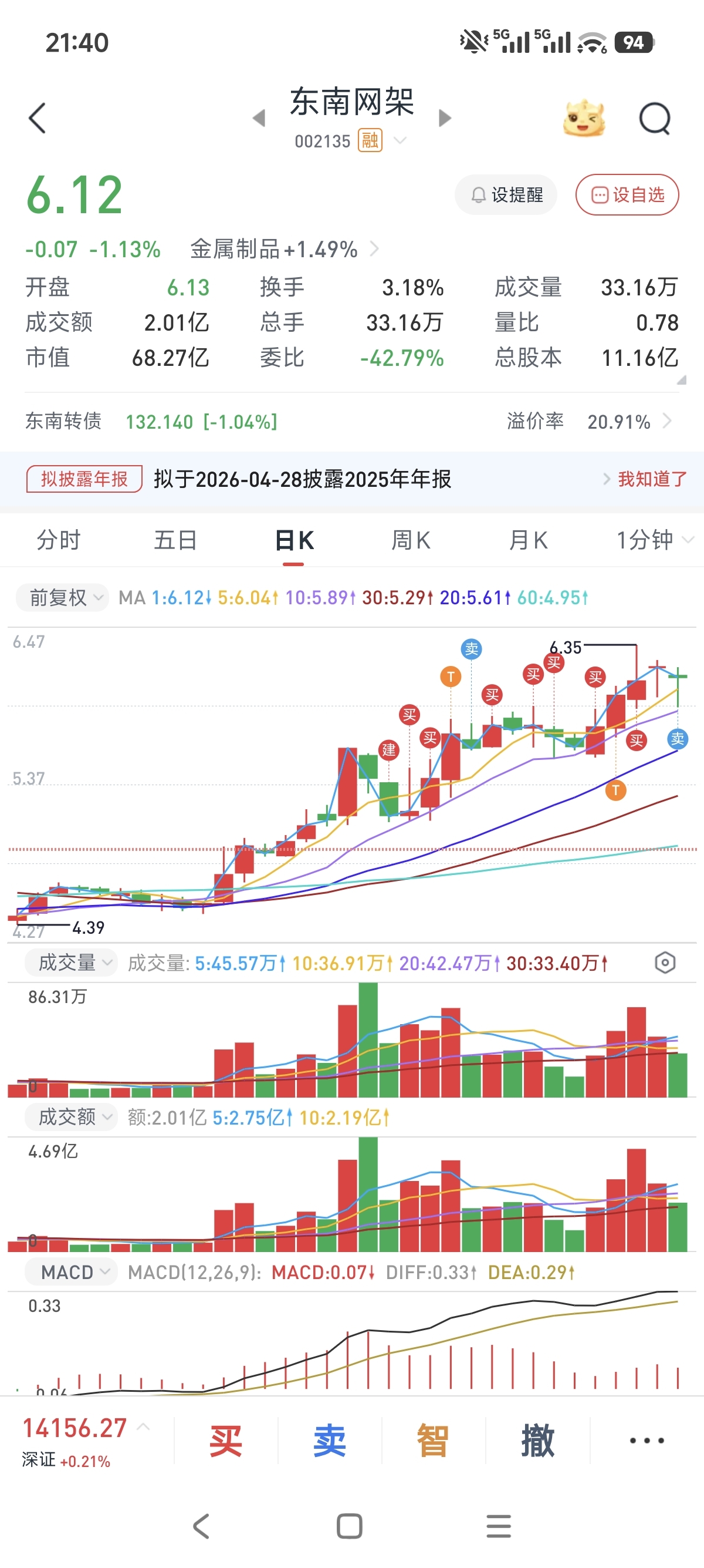 $东南网架(SZ002135)$ 留底仓,我先去农业玩几天就回来,