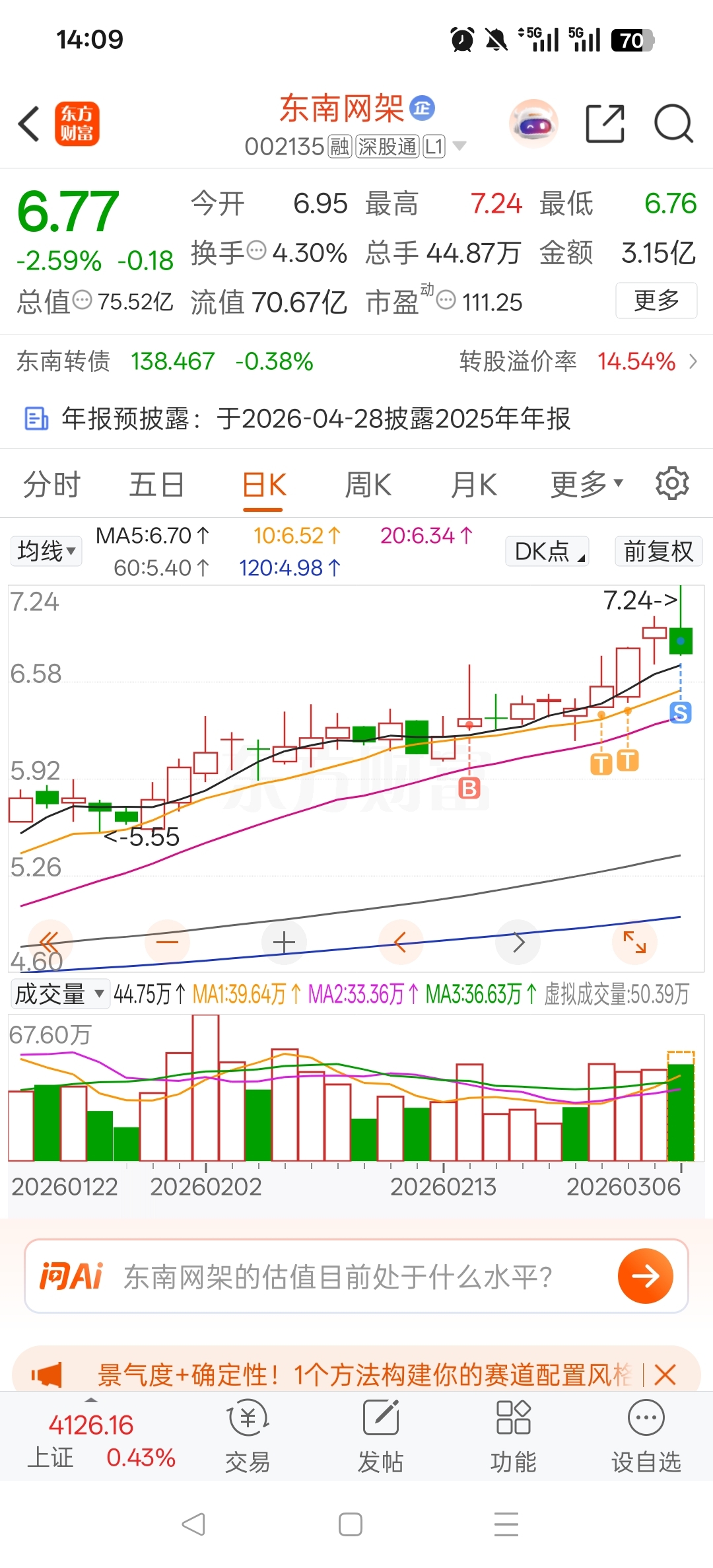 $东南网架(SZ002135)$ 我情绪上来了,把我洗出去了,唉,早上的心态还是拿住,不破五日线不走了,没破我就跑了,自己没有纪律