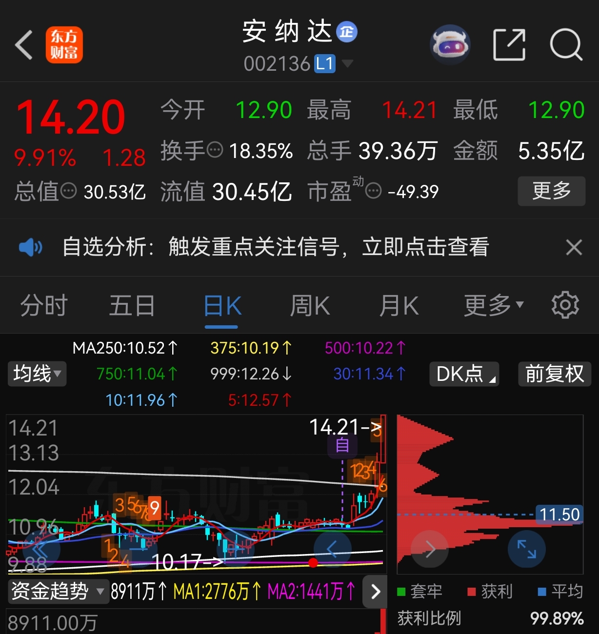 $安 纳 达(SZ002136)$ 虽是磨叽国企,但已是一颗冉冉升起的新星