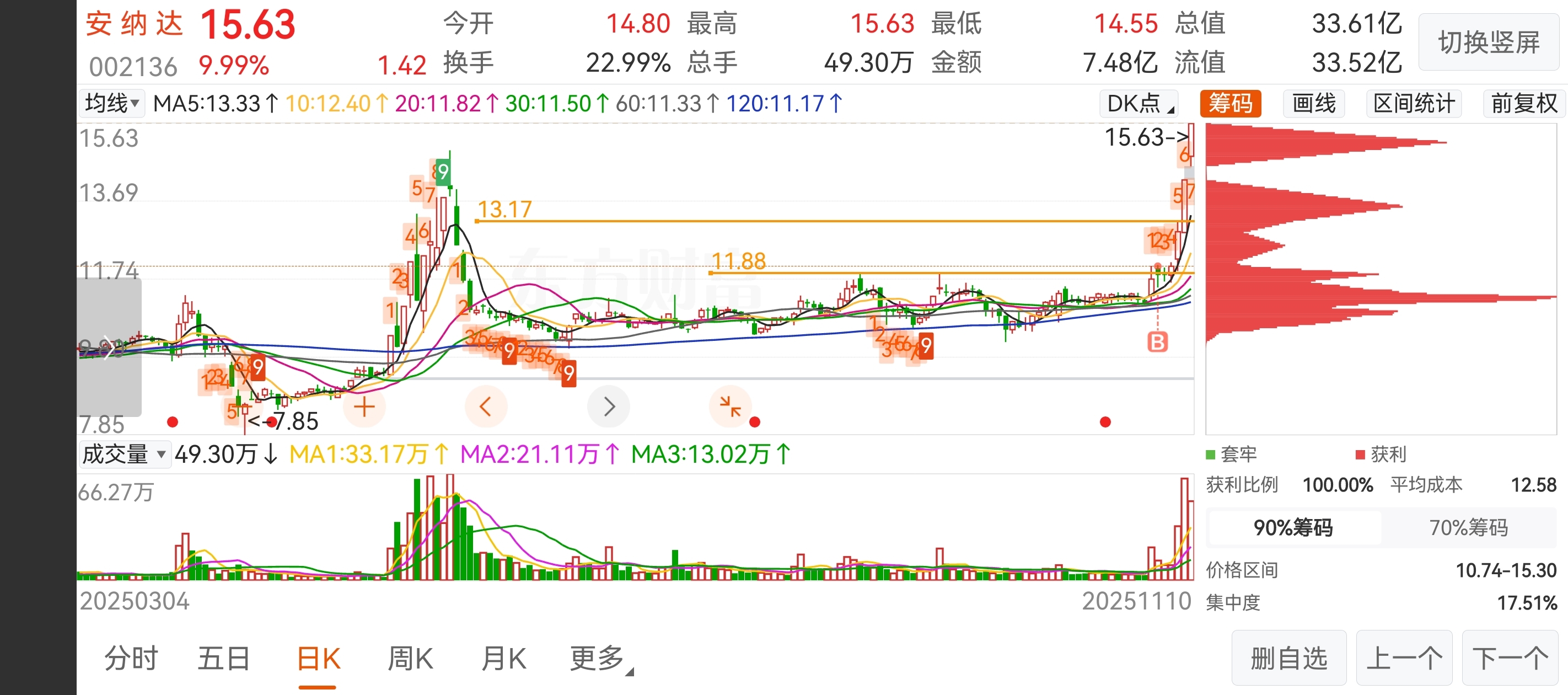 $安 纳 达(SZ002136)$ 继续坚持持有