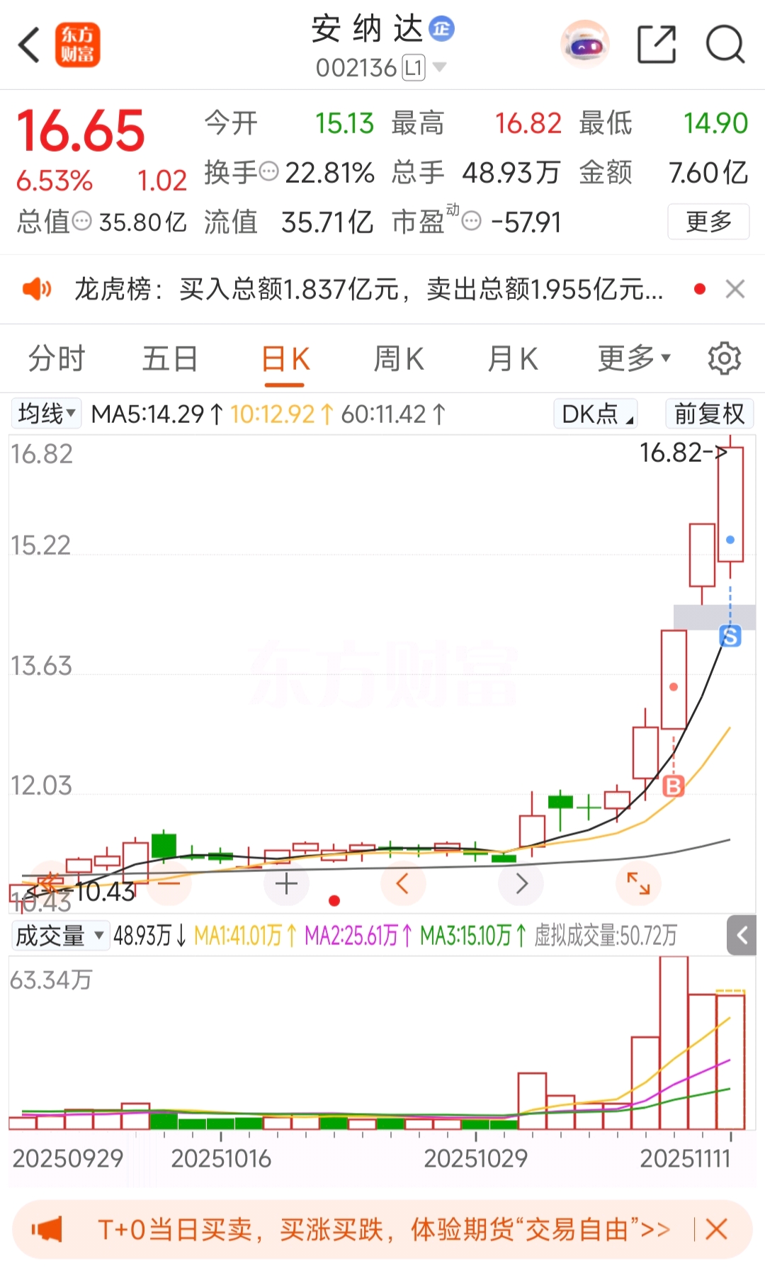 $安 纳 达(SZ002136)$ 可恶 被洗出去了